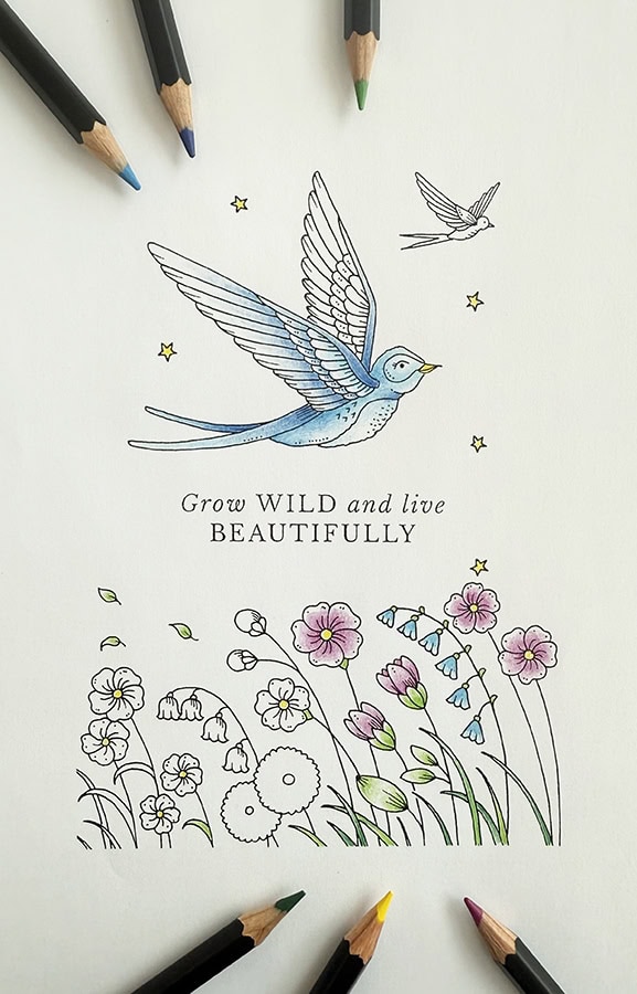 Get your Free Card HERE – it’s the perfect colouring warm-up for 26th February when Notes from Nature will be yours to buy!